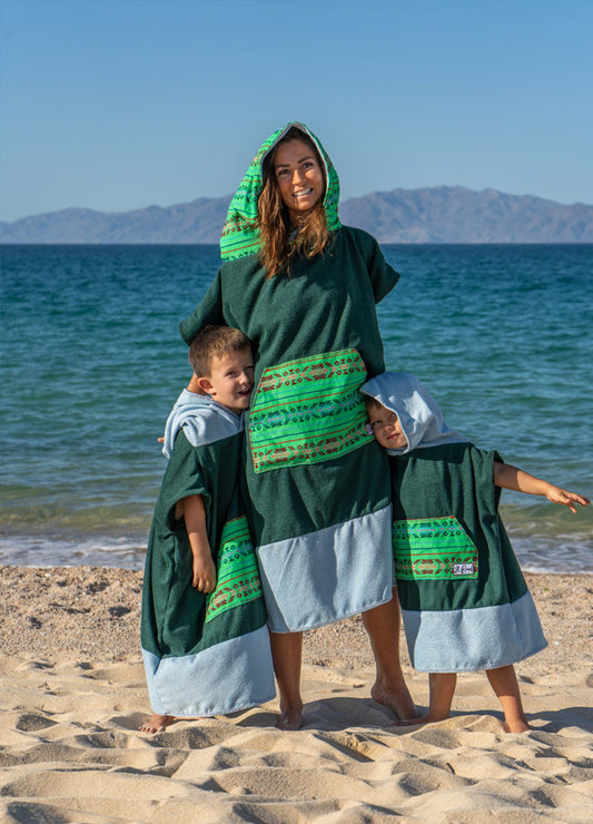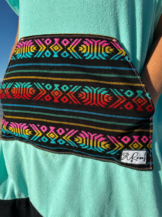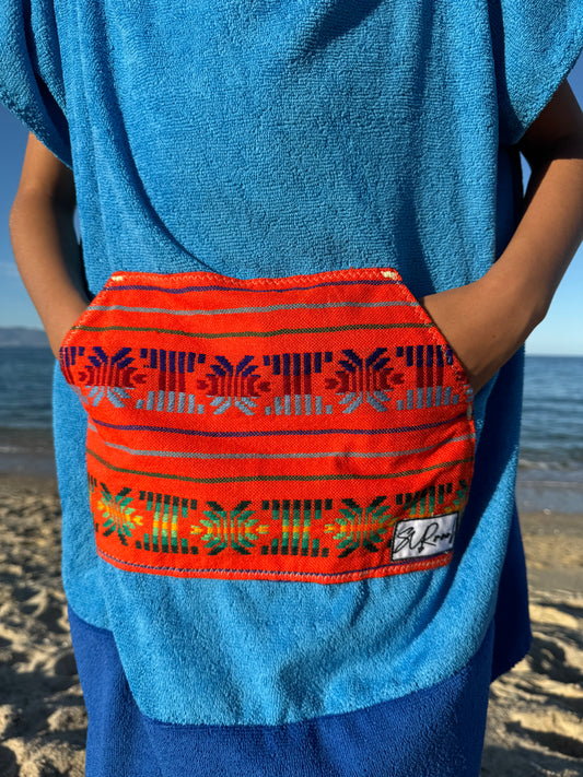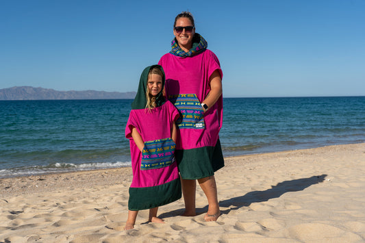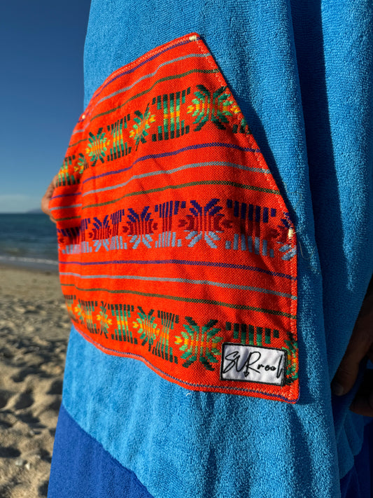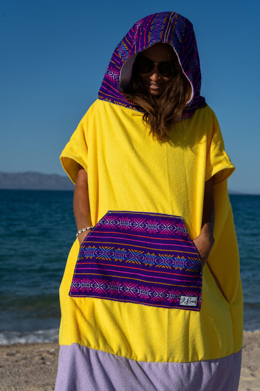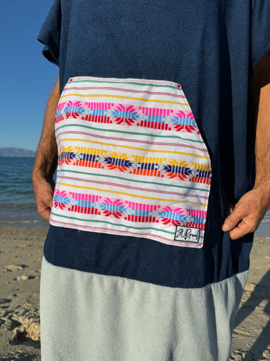 Designed and handmade by local women in La Ventana, Baja California, Mexico, using terry cloth and Mexican fabric, our ponchos are versatile and can be worn for many occasions.